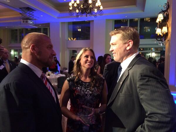 Triple H & Stephanie McMahon on Wednesday night accepted an Impact Award presented to WWE by the Sports Legacy Institute for the company’s work with concussions. Above is a photo of Triple H & Stephanie with former WWE Superstar Chris Nowinski taken from the event.