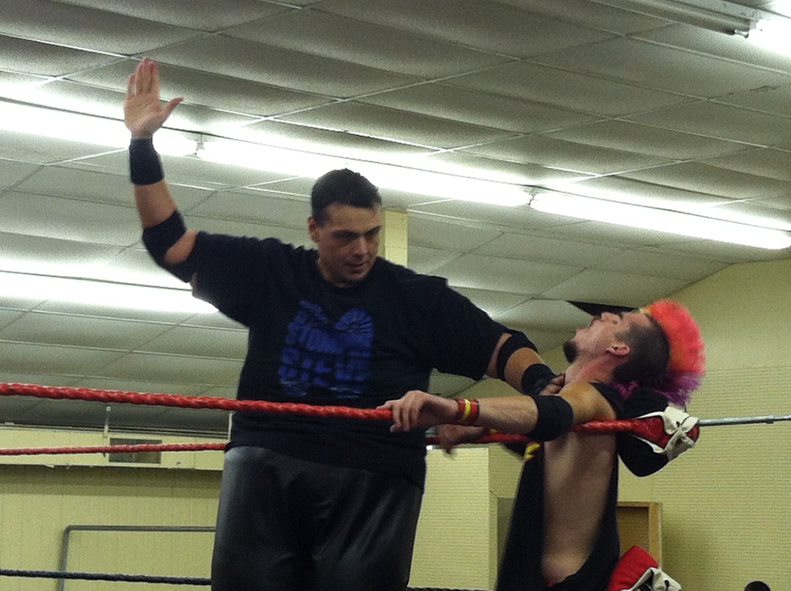Stompin Steve takes a big hit on this YouTube video durig a match at New Era Wrestling’s Trick or Cheat.